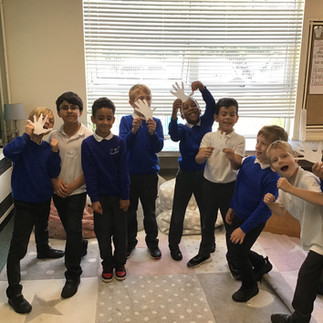 We all agreed that we'd rather have our hands instead of paper ones - ours work best! You can see in the pictures we were very proud of our work and had a really good time learning.